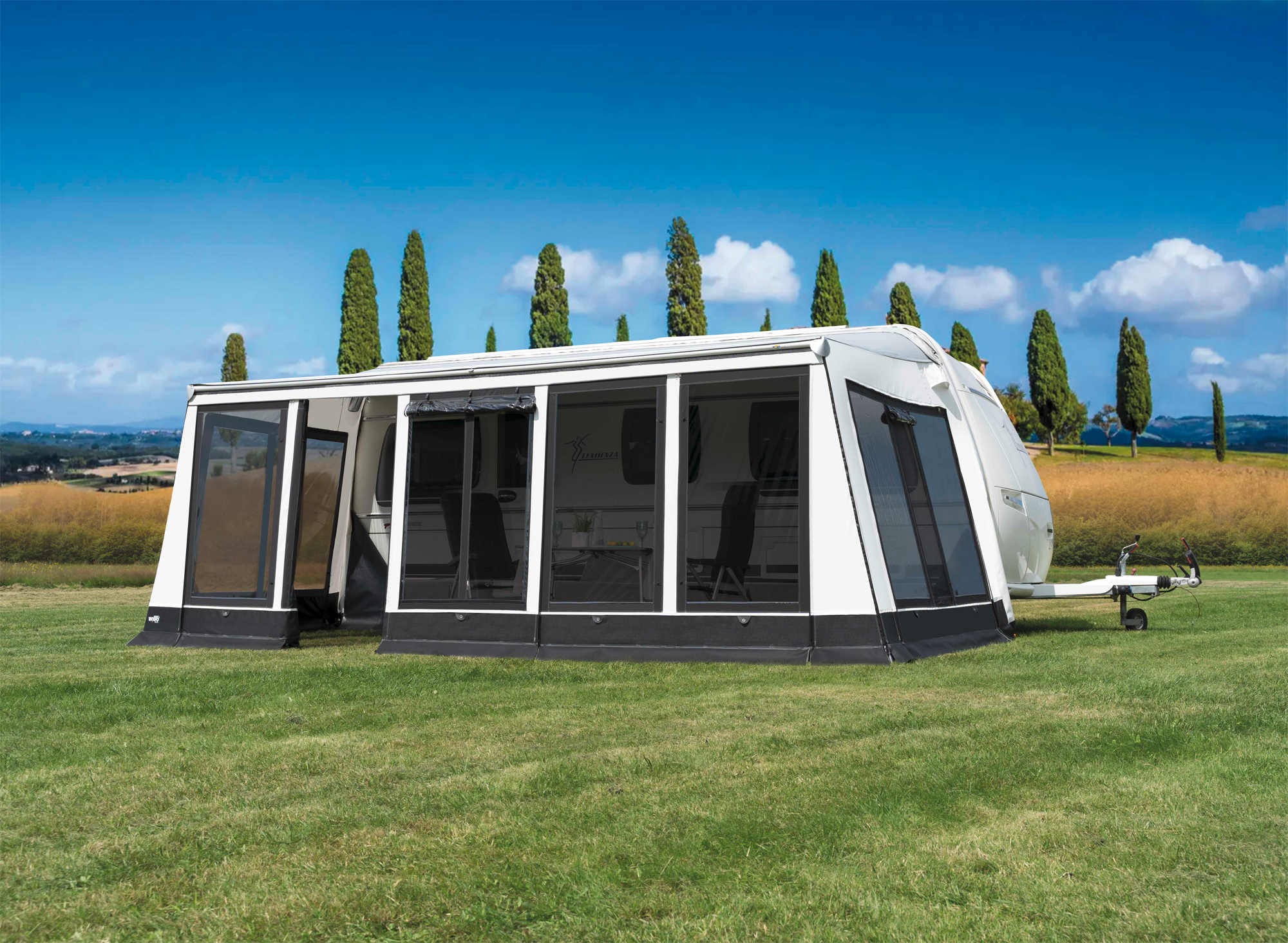 Details * Modulares Markisenzelt als volleingezogene Version * Komplettset oder als Einzel Module bestellbar * Module können einzeln bestellt und kombiniert werden * Leichter und schneller Aufbau * Hohe Stabilität, einfaches Handling * Höchste Materialqualität und beste Verarbeitung * Sturm Abspanndreiecke außen unterhalb der Fenster * Variable Eingangsmöglichkeiten * Vorderwand mit AIR VENT Fenster (ab Größe 7 mit GAZE möglich) * Vorderwandhälften herausnehmbar * Vorderwandhälten zur Veranda klappbar (Stange Option) * Seitenwände zur Veranda klappbar (Stange Option) * Seitenwände herausnehmbar * Seitenwände mit AIR-VENT-Fenster * AIR-VENT-Fenster mit Folienfensterklappe verschließbar und ausstellbar * VARIO ECK zum Ausgleich der Bugschrägen * Doppelter Faulstreifen * Abgedeckte Reißverschlüsse * AIR-VENT Fenster * Power Grip System * Fensterfolie getönt Material * Dach: Tencate All Season * Seitenwand / Vorderwand: Airtex * Spritzwand / Schmutzstreifen: PVC (Polyvinylchlorid) Gerüst * Dach: Rolli Dachstange Alu 28/250 mit Power Grip / Rolli Dachstange Alu 32/300 mit Power Grip * Seiten / Vorderwand: Rolli Aufstellstange Alu 28 mit Power Grip / Rolli Aufstellstange Alu 32 mit Power Grip Verfügbare Größen Größe 5 Umlaufmaß 841 – 875 cm Größe 6 Umlaufmaß 876 – 910 cm Größe 7 Umlaufmaß 911 – 945 cm Größe 7b Umlaufmaß 894 – 929 cm Größe 8 Umlaufmaß 946 – 980 cm Größe 8b Umlaufmaß 930 – 964 cm Größe 9 Umlaufmaß 981 – 1015 cm Größe 9b Umlaufmaß 965 – 999 cm Größe 10 Umlaufmaß 1016 – 1050 cm Größe 10b Umlaufmaß 1000 – 1034 cm Größe 11b Umlaufmaß 1035 – 1069 cm Größe 12 Umlaufmaß 1086 – 1120 cm Lieferumfang * Rolli Plus Modul Dach Ten Cate all season 300 * Rolli Dachstange Alu 32/300 mit Power Grip * Rolli Aufstellstange Alu 32 mit Power Grip * Rolli Plus Modul Front * Rolli Plus Modul Side 300 * Rolli Rad und Windblende * Rolli Abspannmaterial * WIGO Packsack schwarz Art Markisenwand /-Zelt: Markisenvorzelt inkl. Markise, Material: Tencate All Season / Airtex / PVC, Ausführung: Größe 6 (876-910 cm), Umlaufmaß: 876 – 910 cm