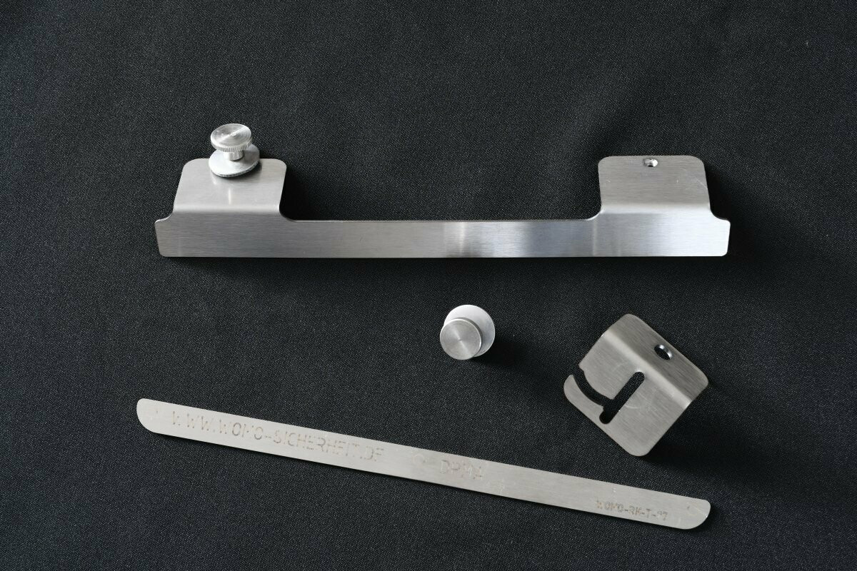 WOMO-RK ist das Sicherheitsprofil für vorgehängte rahmenlose Fenster mit geringem Überhang nach unten, wie sie an vielen Reisemobilen verbaut sind. Bei diesem Profiltyp wird das Sicherheitsprofil in 2 Teilen, 1x außen und 1x innen, mit der Acrylglasscheibe fest verklebt. Kein Bohren notwendig. Die von außen angebrachte Leiste dient der Abschreckung und dem Spannungsausgleich. Die mitgelieferten Winkel und Rändelschrauben sichern das Fenster in geschlossenem, als auch in Lüfterstellung vor unliebsamen Besuch. Alle Funktionen des Fensters bleiben somit erhalten. Auch das Fliegengitter und das Sonnenrollo funktionieren weiterhin ohne Einschränkung. Die Profile sind so für Sie montagefertig vorbereitet, Sie müssen die Scheibe lediglich reinigen und mit Waschbenzin oder Feuerzeugbenzin entfetten. Schutzstreifen des Hochleistungsklebestreifens entfernen, anheften, handfest anpressen, Fertig! 48 Std. später gebrauchsfertig. Bitte in der Zeit nur die bisherigen Fensterriegel nutzen. Bei Dometic Fenstern enthält das Etikett auf der Scheibe oben links oder rechts (die unterste Zeile) die entscheidenden Informationen. Auswahl der passenden Variante Nach der Bestimmung der nutzbaren Geraden wählen Sie das größtmögliche Sicherheitsprofil. Das Sicherheitsprofil ist innen immer 2cm kürzer, da die Laschen auf jeder Seite um 1cm eingerückt sind. Beispiele: Nutzbare Gerade ist 60 cm >>> WOMO-RK-62 Nutzbare Gerade ist 49,5 cm >>> WOMO-RK-52 Nutzbare Gerade ist 42 cm >>> WOMO-RK-37 Dann überprüfen Sie unbedingt die Position der Laschen, diese dürfen nicht mit den Verriegelungen kollidieren. Für die Größe 27, 37 und 52 gibt es die S variante mit weiter eingerückten Laschen (siehe Tabelle). Typ Länge (mm) Abstand links (mm) Abstand rechts (mm) Abstand Laschen außen (mm) Abstand Laschen innen (mm) RK-22 220 10 10 200 100 RK-27 270 10 10 250 150 RK-27s 270 60 60 150 50 RK-37 370 10 10 350 250 RK-37s 370 60 60 250 150 RK-52 520 10 10 500 400 RK-52s 520 60 60 400 300 RK-62 620 10 10 600 500 RK-72 720 10 10 700 600 RK-82 820 10 10 800 700 RK-92 920 10 10 900 800 Achtung! Gilt nicht für Polyvisionfenster!! Hier bitte die Breite der Scheibe messen, idealerweise die glatte Innenseite. Anzahl der Riegel notieren und den Abstand der geschlossenen Scheibe zum dem Punkt, wo der Riegel sich am Rahmen abstützen kann. Art Fenster & Rollos: Zubehör, Ausführung: RK-37