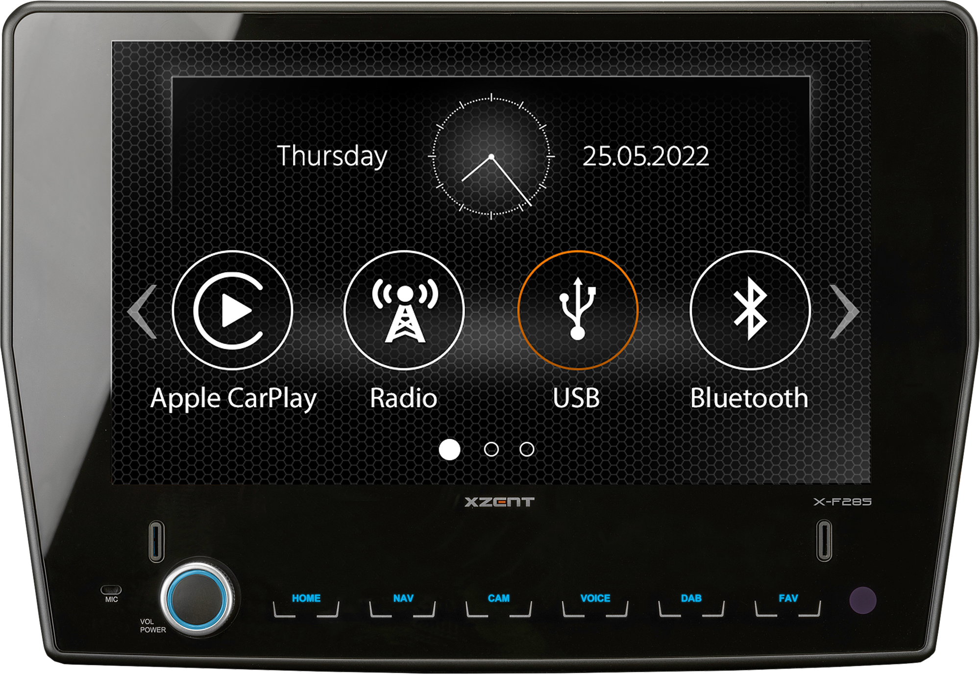Modernes Infotainment für Ihr Reisemobil: Der XZENT X-F285 ist maßgeschneidert für den neuen FORD Transit (MY2019.75). Der X-F285 integriert sich perfekt ins Armaturenbrett dieses Fahrzeugmodells und bietet aktuellste Navigations- und Unterhaltungsfunktionen. Das große kapazitive 9“/22,9 cm Echtglas-Touchscreendisplay ermöglicht eine einfache, intuitive und vollkommen sichere Bedienung des Geräts, auch während der Fahrt. Der X-F285 ist mit einem DAB+ Twin-Tuner ausgestattet, der entspannten mobilen Digitalradio-Empfang in höchster Qualität ermöglicht. Das moderne DAB+ Modul punktet durch einfache Bedienbarkeit und Funktionsvielfalt: Dazu gehören Features, wie DAB-DAB Service Following, DLS-Text, MOT-Slideshow sowie der Hintergrundscan, der die dynamische Senderliste immer auf dem aktuellsten Stand hält. Neben einem UKW-RDS Tuner ist der X-F285 mit zwei USB 2.0 Ports ausgestattet, die sich zur Wiedergabe von Audio- und Videodateien sowie zum Anschluss von Apple iOS und Android Smartphones nutzen lassen. Via USB-Port können Sie Ihr iPhone direkt an den X-F285 andocken – der XZENT unterstützt dann Apple CarPlay. Telefonieren, Navigieren, Nachrichten senden und empfangen oder Musik hören – alle unterstützten Funktionen steuern Sie bequem per Siri Sprachsteuerung oder über das große Display. Die vorinstallierte AndroidLink App ermöglicht die Spiegelung der Bildschirminhalte von Android-Smartphones auf das Infotainerdisplay und eine direkte Steuerung der gespiegelten Apps über den Touchscreen des X-F285. Dank Echo-Cancelling und Rauschunterdrückung überzeugt das moderne, einfach zu bedienende Bluetooth 4.2 Modul mit seiner hohen Sprachqualität. Der Import von bis zu 1000 Telefonbuchkontakten mit jeweils 3 Rufnummern und eine Suchfunktion gehören ebenso zu den Komfortfunktionen wie A2DP-Musikstreaming mit AVRCP Steuerung von Smartphones. Der X-F285 hat zwei Kamera-Eingänge (CVBS) mit geschalteter Stromversorgung und verfügt über eine automatische Rangier-/ Umschaltfunktion, die durch Einlegen des Rückwärtsgangs getriggert wird. Zur besseren Distanzeinschätzung können Sie Hilfslinien einblenden. Über die CAM Direktwahltaste an der Gerätefront lässt sich die Kamerafunktion auch manuell starten. Für den X-F285 sind optional zwei Navipakete lieferbar, die den Infotainer zum Reisemobil-Naviceiver ergänzen: X-MAP27-MH1 mit 1 Jahr kostenfreier Kartenaktualisierung und X-MAP27-MH3 mit 3 Jahren kostenfreier Kartenaktualisierung. Beide Navipakete umfassen Karten von 47 EU-Ländern, eine umfangreiche P.O.I. Camping Schaf Datenbank (mehrsprachig, lebenslange Lizenz) mit Informationen zu mehr als 20.000 Stell- und Campingplätzen sowie eine Premium P.O.I. Datenbank mit mehr als 6,5 Millionen Sonderzielen. Der X-F285 verfügt über die DAB-TPEG-Funktion, um Verkehrsereignisse mittels Free TPEG Daten (länderspezifische Abdeckung) schneller und genauer anzuzeigen. Die NextGen Navigations-Engine ermöglicht die Eingabe von fahrzeugspezifischen Profildaten (Länge, Breite, Höhe, Gewicht und Anhänger), um die Route exakt zu berechnen und dabei auch Straßen- und Brückendurchfahrten zu vermeiden, die für Reisemobile ungeeignet sind. Funktions-Highlights * Fahrzeugspezifischer Reisemobil Infotainer für FORD Transit, mit Navigationsfunktion aufrüstbar (Die Navigationssoftware Pakete sind nicht Bestandteil des Geräte-Lieferumfangs) * Kapazitiver, berührungsempfindlicher 22,9 cm/9“ Bildschirm (1024 x 600 Pixel) mit Echtglasoberfläche * DAB+ Twin-Tuner mit DAB-DAB Service-Following, MOT Slideshow, dynamischer Senderliste und DLS-Text * Works with Apple CarPlay * Made for iPod / iPhone * AndroidLink für Android OS Smartphones mit Dual-Protokoll Unterstützung * Bluetooth 4.2 Modul mit Freisprechfunktion und A2DP * Steuerung von zwei Rückfahrkamerasystemen mit automatischer Umschaltfunktion und einblendbaren, einstellbaren Hilfslinien * Grafische Benutzeroberfläche mit Unterstützung von 13 EU Sprachen * Beleuc…